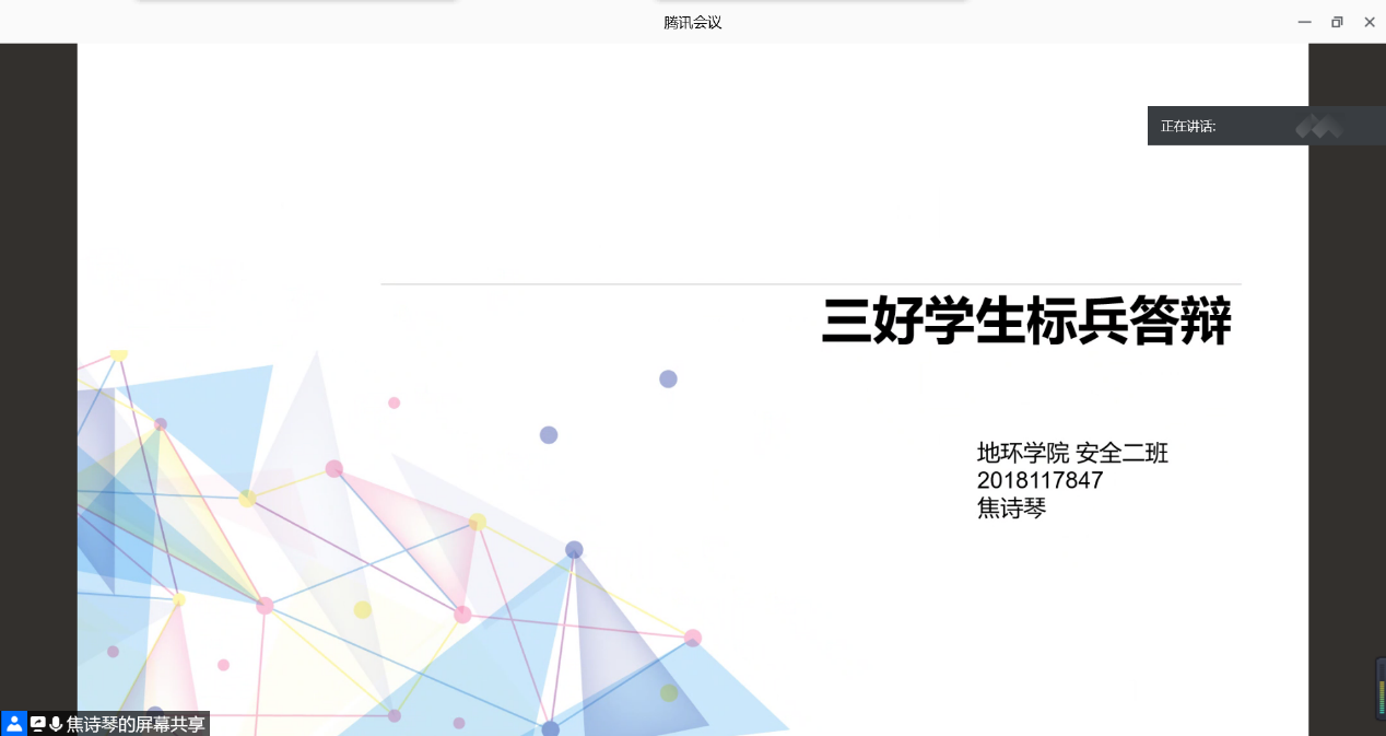 至此,2018级环境、安全工程专业2019-2020学年三好标兵答辩暨分享会圆满结束。