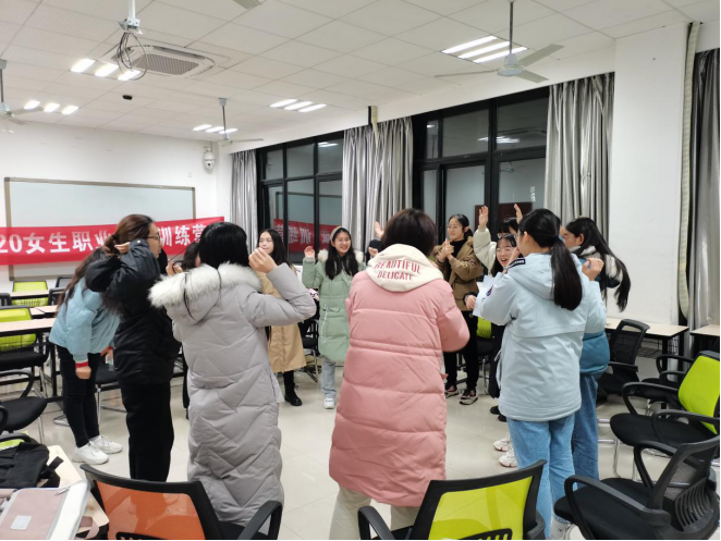 在自我介绍环节及自信的手势环节,同学们依次发言,表达出自己对作为女生在就业方面的迷茫,同时各位同学也分享了自己在自信时的动作,以及对女生训练营接下来的活动的期待。郑老师表示,设置自我介绍环节的目的在于让营员从了解自己开始,明晰面对就业所遇到的问题,个人发展从困惑到寻找,从学习到明晰。