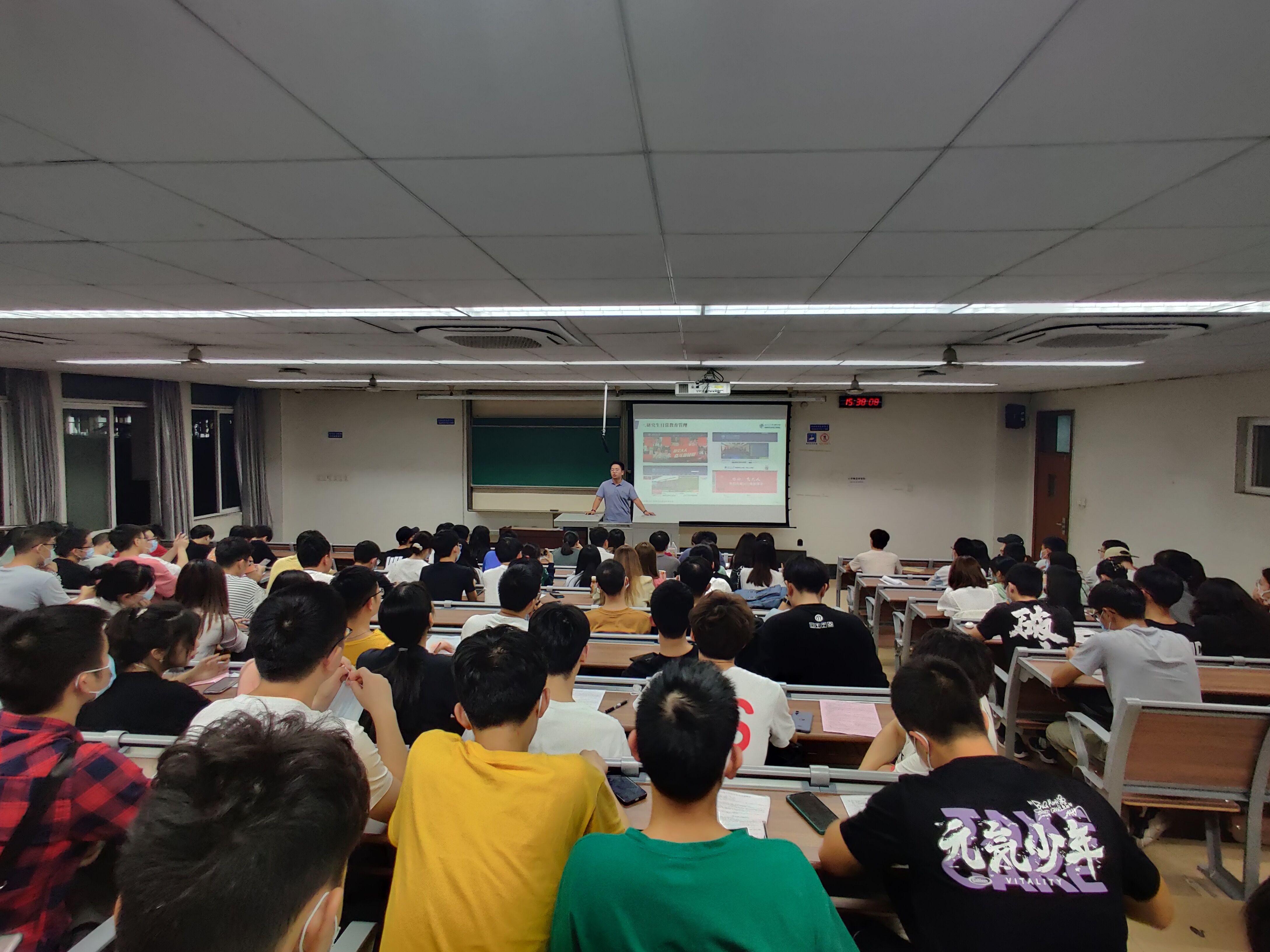会议伊始,两位老师分别向全体新生研究生表达了热烈的欢迎,接着两位老师从研究生日常教育管理入手,就研究生在校期间的学习科研规划、安全问题、学术道德诚信、心理健康教育、党团班级建设、以及近期的一系列工作安排进行了详细的讲解。