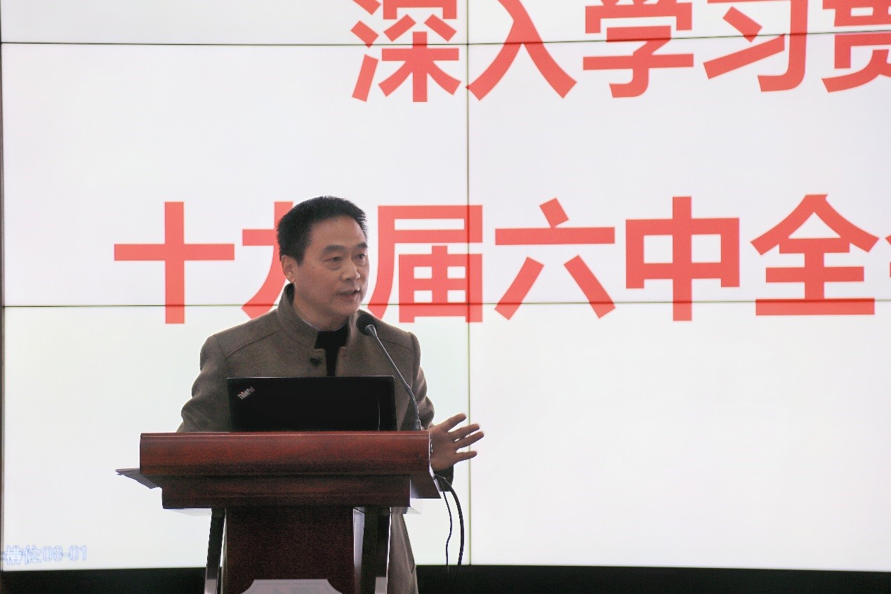 11月16日下午,地学学院于X4243举行十九届六中全会学习贯彻启动会,学院党委书记关秦川、执行院长刘国祥等领导班子成员,教授委员会成员、教师党支部书记、学科带头人代表、各系(室、中心)主任、教师代表等参会。关秦川担任主讲人。