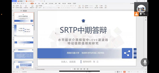 11月25日晚七点三十分,地学学院地质、资勘专业2021年SRTP校创、院创项目中期答辩于线上顺利开展。本次答辩主持人为张志厚老师,答辩会议由各项目小组成员和指导老师共同参与。参与答辩的项目组共有14个,包括7个校级项目和7个院级项目。本次答辩旨在了解各项目的实际发展情况,同时对各项目的研究现状和研究半成果进行分析和评审,为项目组进行下一阶段的研究工作提供指导和建议。