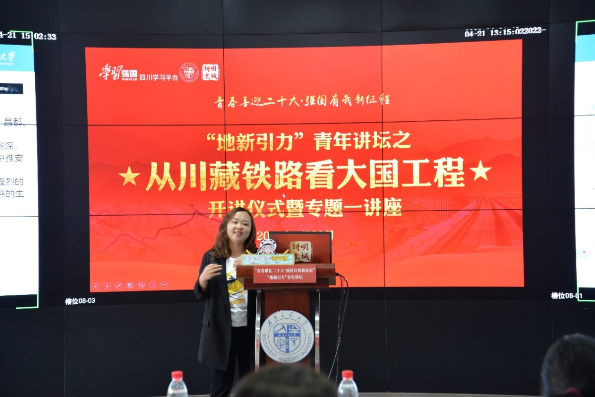 会议分两个阶段进行,第一阶段举行地学学院“青春献礼二十大,强国有我新征程‘地新引力’青年讲坛之从川藏铁路看大国工程”系列讲座开讲仪式。