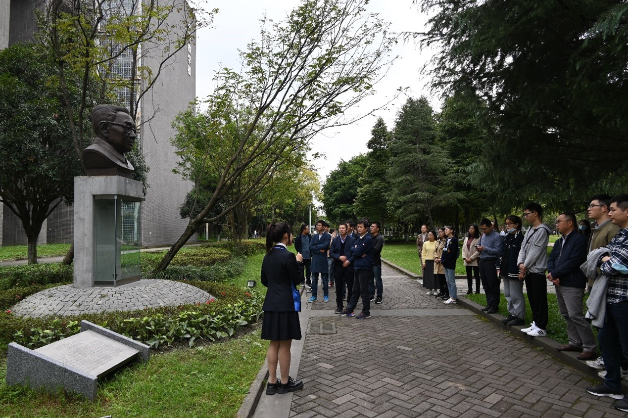 校园大使团成员张禹淇带领老师们走中轴线,重温学校126年办学历程,领略大师风采。从南大门到“竢实扬华”墙再到四号教学楼,从标志性建筑到杰出人物塑像,从学校历史发展到精神内核培育,讲述了 “竢实扬华,自强不息”的交大精神、“精勤求学,敦笃励志,果毅力行,忠恕任事”的交大校训、“严谨治学,严格要求”的优秀传统,展现出学校教师风清气正、一心为国的高尚品质,对在场青年教师产生积极深远的教育意义。