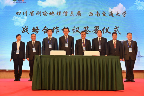 党委常委、副校长沈火明代表学校同四川省测绘地理信息局代表刘宇副局长签署战略合作协议。四川省测绘地理信息局局长党组书记杨宏山、李见阳处长、王芳处长,JVID