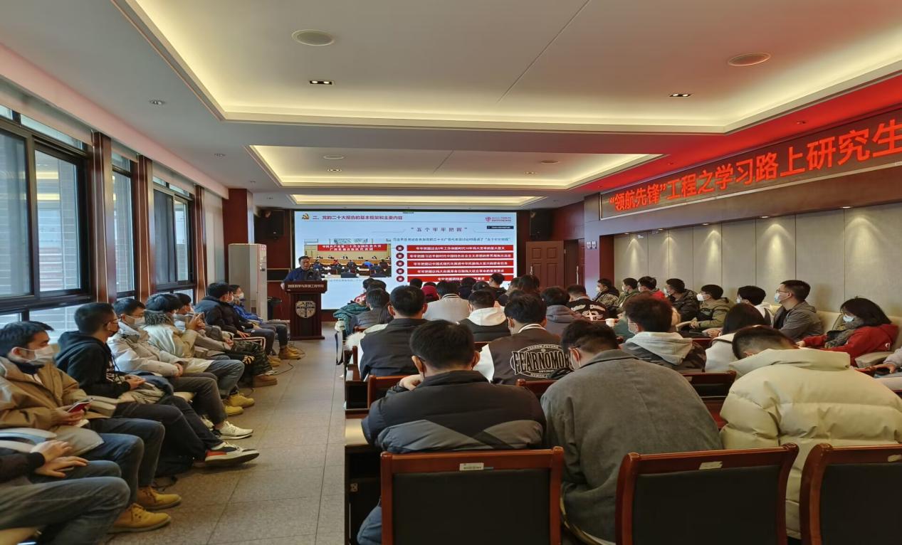 为深入贯彻落实党的二十大精神,进一步引导研究生党员筑牢理想信念,青春向党,奋斗向前,不断提升党性修养,推动两院的研究生党员持续用党的二十大精神武装头脑。2022年12月8日下午16:30,地学学院党委联合材料学院党委以线上线下结合的方式共同开展“学习二十大·启航新征程”研究生党员读书班讲座。本次讲座由地学学院党委书记关秦川主讲,地学学院研究生党员代表于X4520线下学习,材料学院研究生党员及地学学院其它党员代表线上收看,讲座由地学学院学生党建负责人文强主持。