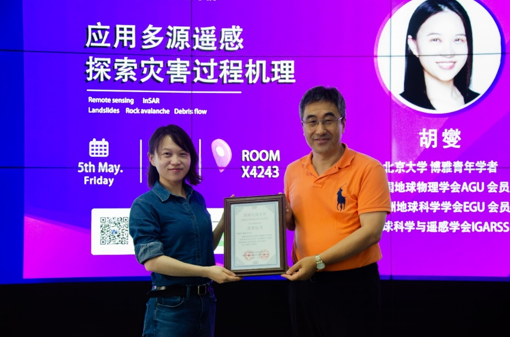 做题为《应用多源遥感探索灾害过程机理》的学术报告。