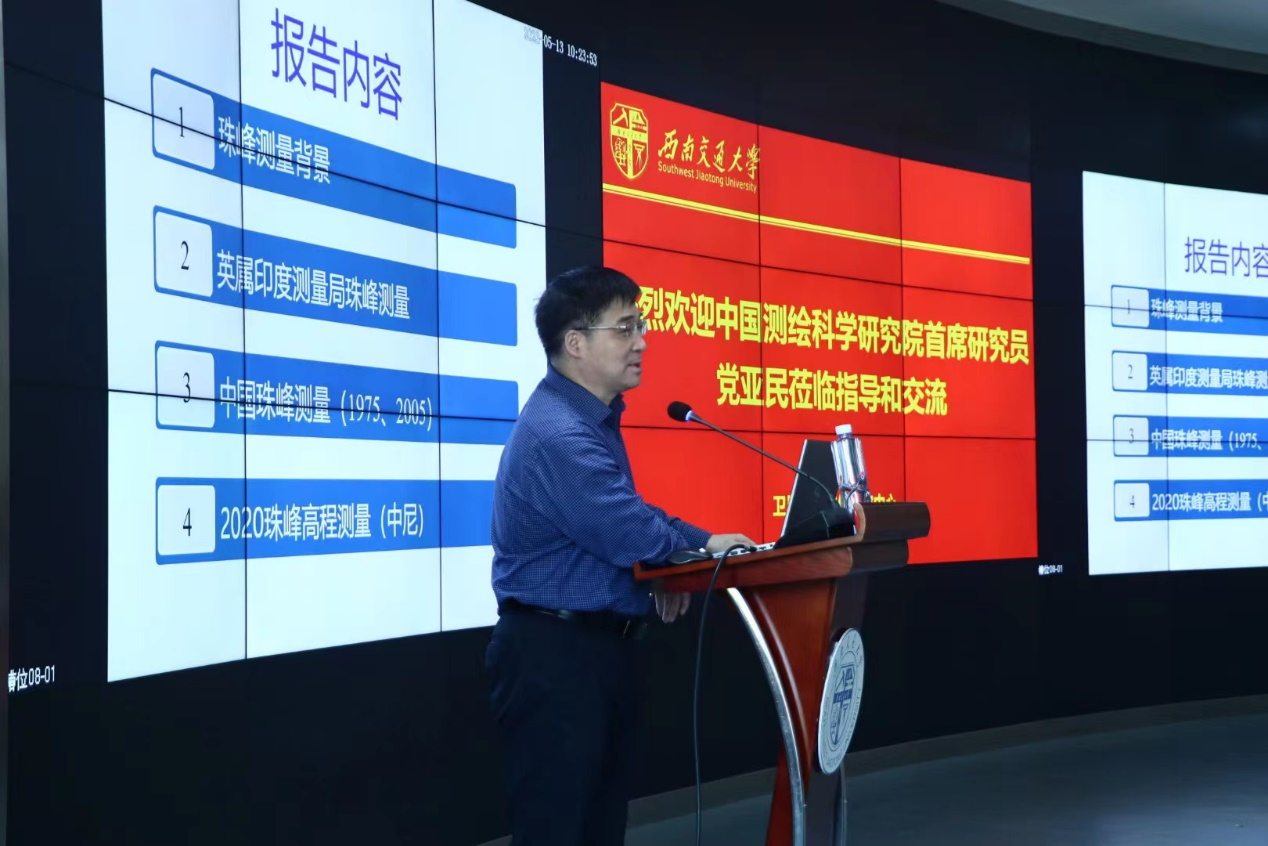 进行学术交流,并就“珠峰测高技术进展”作了学术报告。