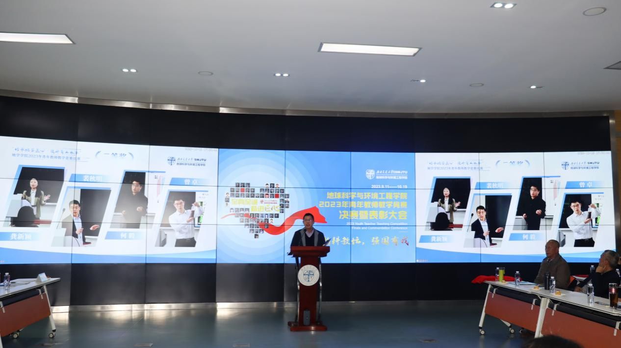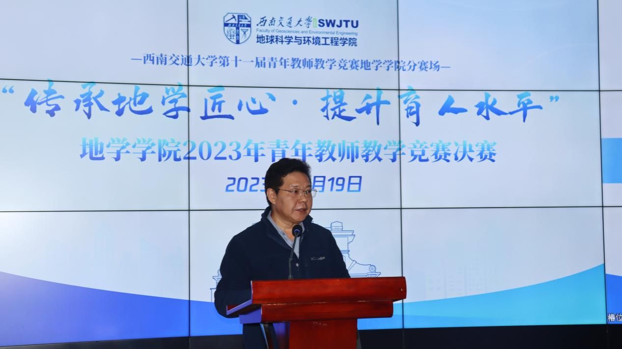 地学学院院长刘国祥致辞。他代表学院,对学校党委教工部、工会、教务处等各位老师的支持和到来,表示热烈欢迎和衷心感谢,对获得奖项的各位老师表示热烈祝贺,向所有参赛的青年教师和组织比赛的工作人员表示衷心的感谢。他表示,地学学院一贯倡导“科研为基,教学为本,科教融合,课程思政”的教育理念,希望通过此次比赛,激发老师们的教育教学热情,不断探讨教学方法、教学手段,不断提升自己的教学水平,为全面提升地学学院教学人才质量做出自己的贡献。同时,学院也一直响应“为党育人、为国育才”的号召,高度重视青年教师队伍建设、注重实验室会议室建设,希望各位老师能借助交大平台不断学习,理论与实践相互结合,成为自主学习、终身学习、本领过硬的人,积极参加国内外的学术会议和教学研讨会,争取国家项目,优化教学手段和方法,加强身体锻炼,用饱满的精神状态,投入到各项教学工作。他勉励大家,地学人要以争当引领者和示范者为目标,希望各位老师在各个方面不断修为,争当大学优秀教师,为国家培养优秀的地质人才,为JVID