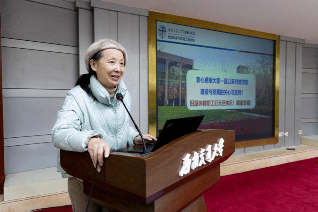 与发展思路、学院建设与发展主要举措、学科专业建设新成效、存在的挑战与今后的重点工作等多个方面,向退休教师通报了学院2023年建设与发展情况。刘院长指出,学院的国家级人才、外籍专家、省部级人才队伍不断壮大,获批的国家自然科学基金项目数稳步增长,获批的其他国家级、省部级项目或课题逐渐增多,发表SCI/SSCI论文数量和质量显著提升,学生在“挑战杯”全国大学生课外学术科技作品竞赛等创新实践竞赛中取得新突破。他表示,地学学院发展到今天,离不开老同志们做出的巨大贡献,吃水不忘挖井人,学院要继承尊师重教的优良传统,爱老、敬老、护老,直面挑战、砥砺前行,传好手中的接力棒;以问题为导向,继续全面实施人才强院战略、国际化战略,加速推进教育教学改革与科学研究创新,为实现地学学科专业高质量发展而努力奋斗,为国家铁路建设和发展贡献交大地学力量与智慧!