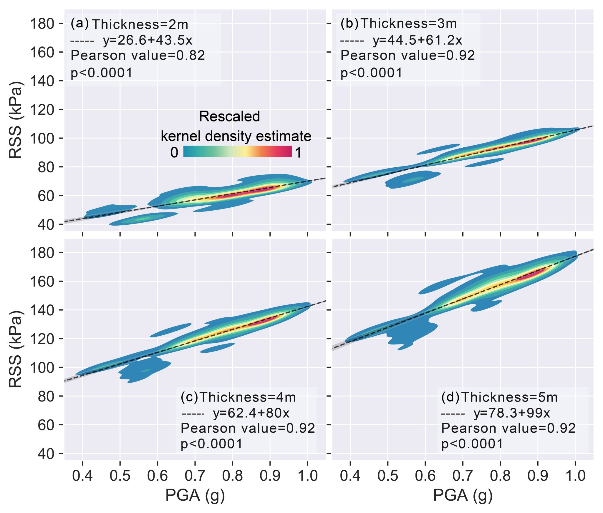 据悉,该论文为揭示强震区震裂山体损伤效应提供新的见解。强震对山体的扰动增加了震后滑坡易发性。然而,以往研究对强震导致斜坡弱化的内在规律认识不足。本研究提出一种基于震后滑坡反演的物理模型以评估地震扰动下斜坡抗剪强度损伤理论值,并进一步结合数据驱动模型推断整个研究区的强度衰减。对2008年5.12汶川特大地震的研究表明,在0.5-0.9 g的峰值地面加速度范围内,斜坡近地表岩土体抗剪强度损伤在60%-75%之间。