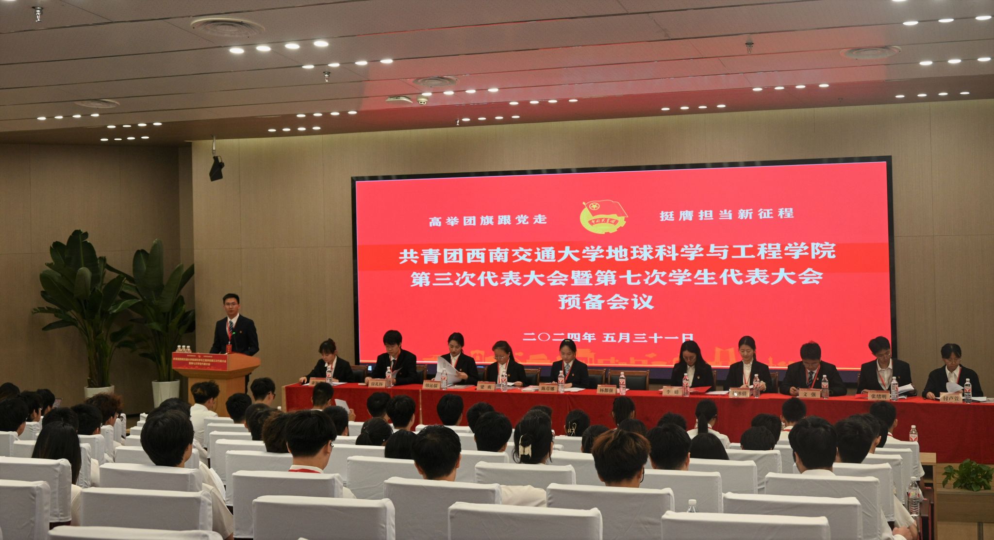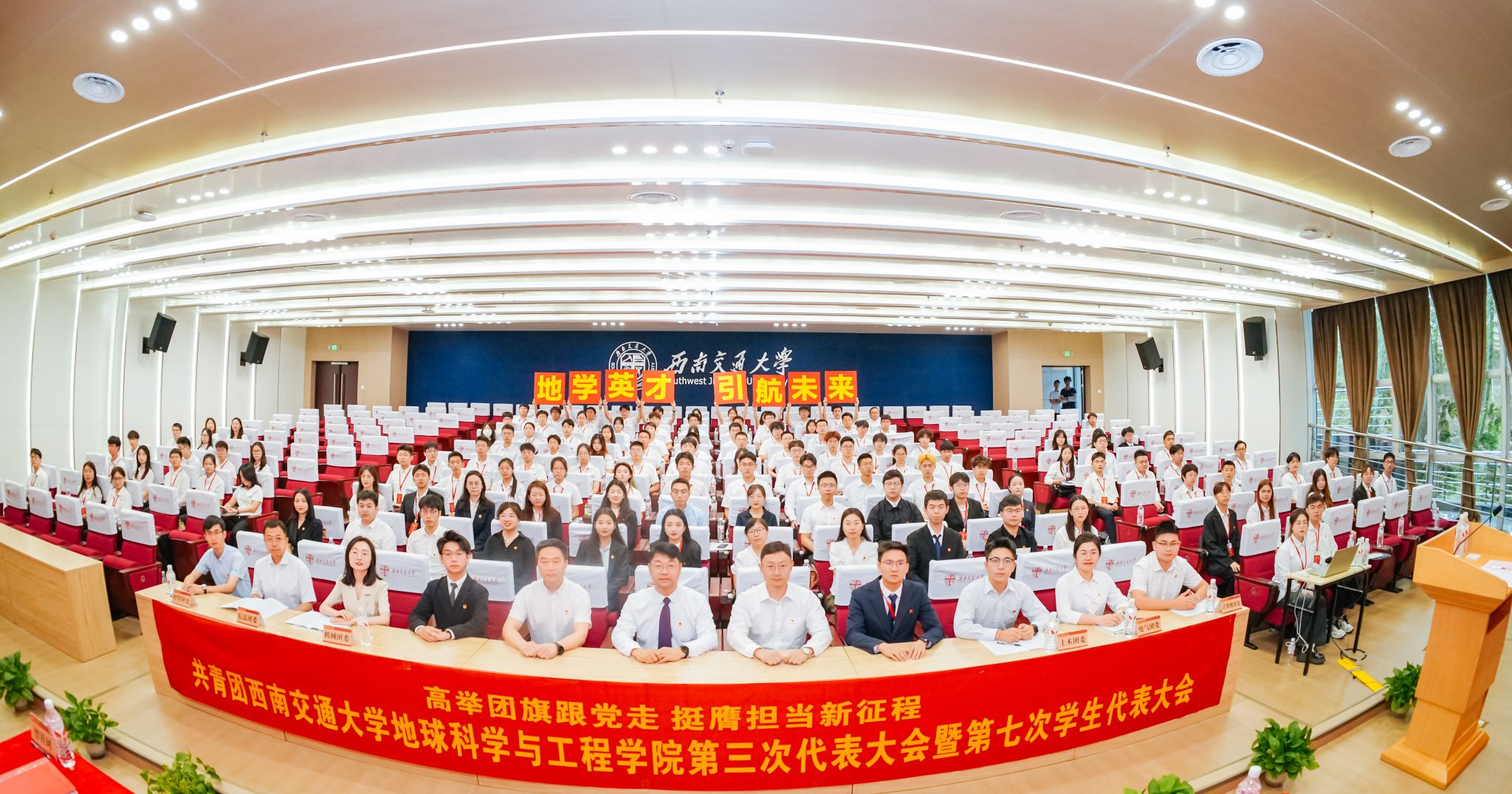 第三次代表大会暨第七次学生代表大会在犀浦校区图书馆二号报告厅隆重召开。校团委书记武俊,地学学院党委书记关秦川、党委副书记郑波,各兄弟学院团委相关负责同志,及地学学院师生代表出席了大会开幕式。大会由地学学院团委书记杨都强主持。