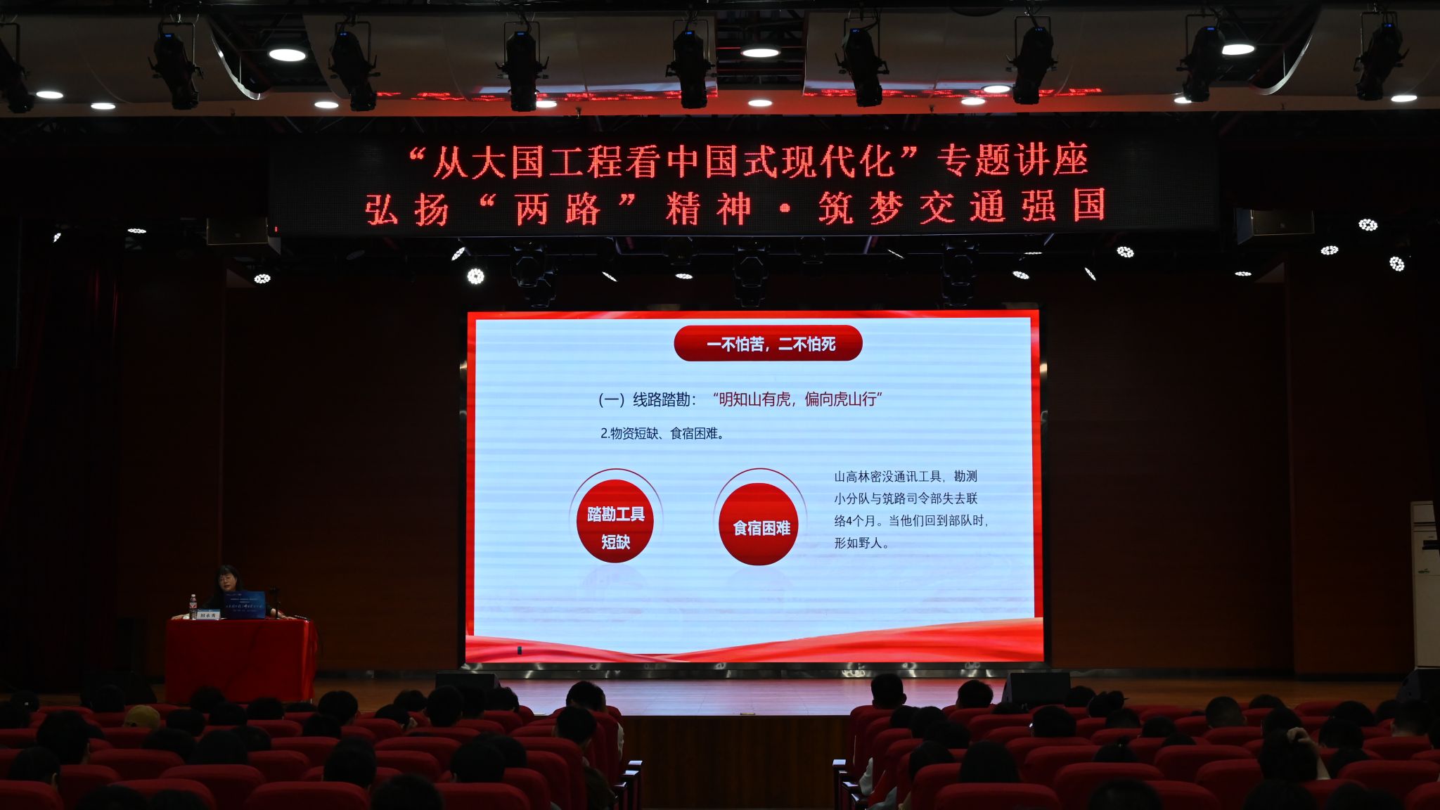 田永秀以《弘扬“两路”精神,筑梦交通强国》为题,围绕“‘两路精神’的内涵”“传承和弘扬‘两路精神’的意义”“如何更好地弘扬‘两路精神’”三个方面为与会学生上了一堂生动的思政课。