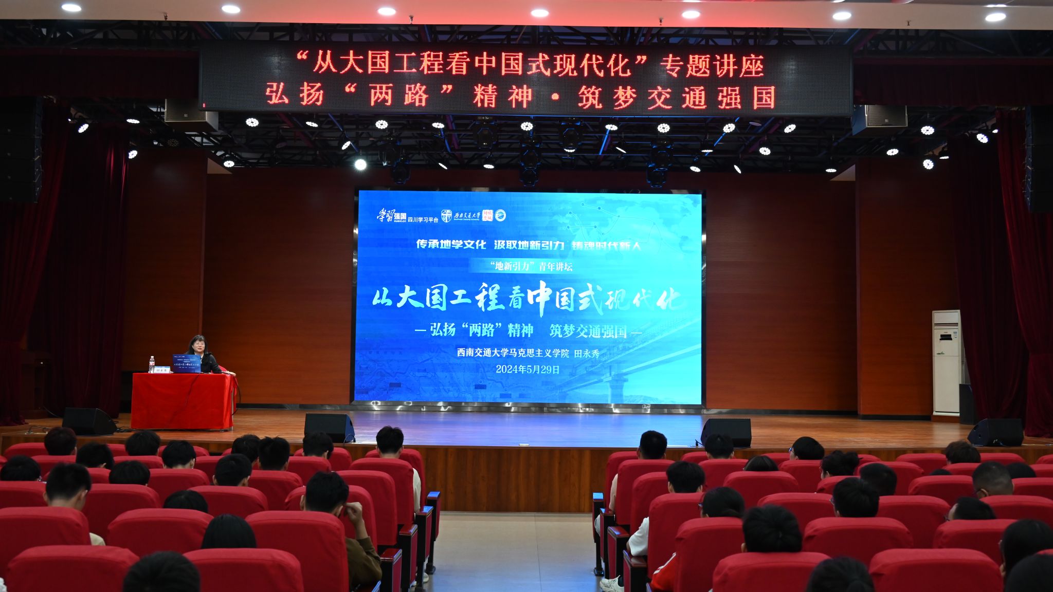 为充分发挥学校轨道交通相关学科优势,引领广大青年学生将小我融入大我,以青春实践奉献祖国,在新时代新征程中奋勇争先建功立业。5月29日晚上19时,地学学院在犀浦校区一食堂三楼开展了“地新引力”青年讲坛——“从大国工程看中国式现代化”专题四讲座。本次讲座邀请了JVID