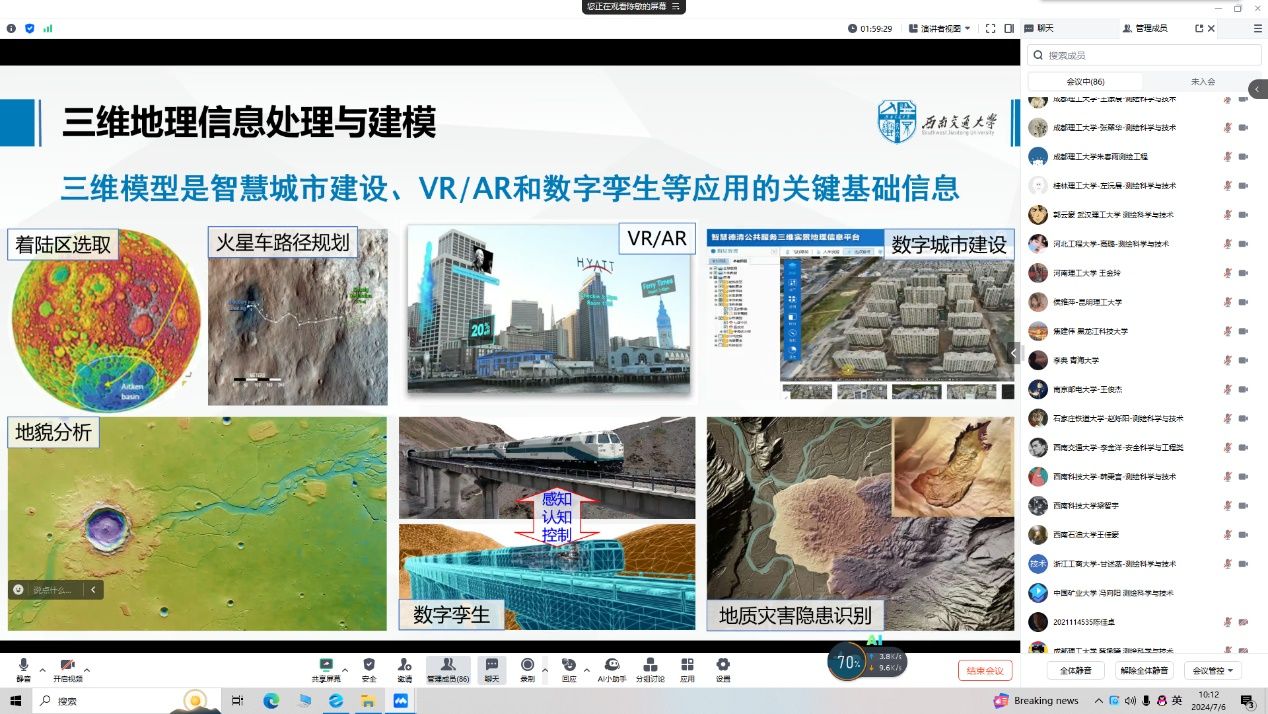 举办了2024年全国优秀大学生暑期云夏令营。本次夏令营共有来自全国42所高校的78名优秀本科生全程参与。通过夏令营,同学们对西南通大学以及地学学科有了更深的了解和认识。