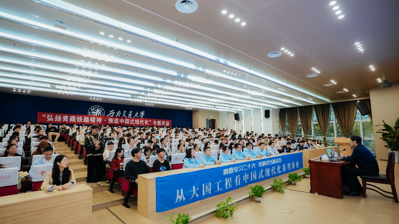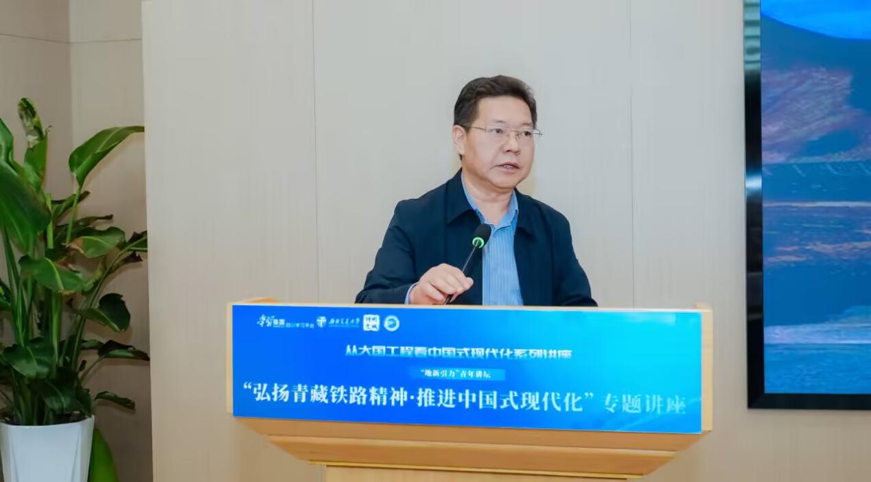10月18日下午,在犀浦校区图书馆二号报告厅,学校特邀中国工程院院士卢春房做客“从大国工程看中国式现代化”系列讲座“地新引力”青年讲坛,以“弘扬青藏铁路精神”为题,给现场师生们带来了一场充满爱国主义情怀、直击心灵的思政报告。地学学院各系教师代表、辅导员、JVID