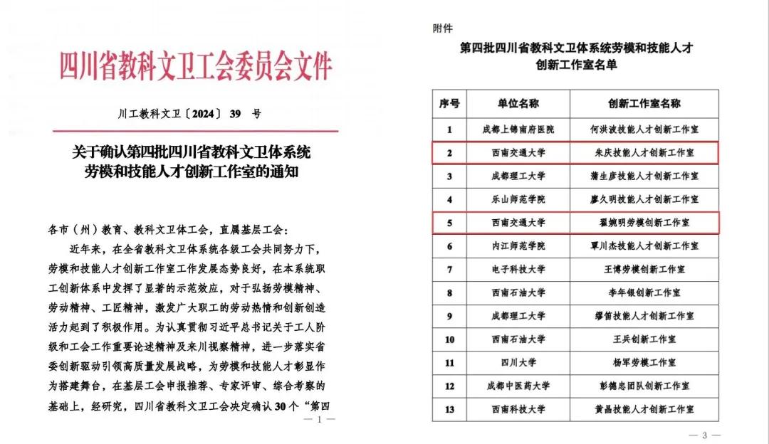 2家创新工作室榜上有名,分别是翟婉明劳模创新工作室、朱庆技能人才创新工作室。至此,学校已拥有省级创新工作室12个,国家级创新工作室2个。