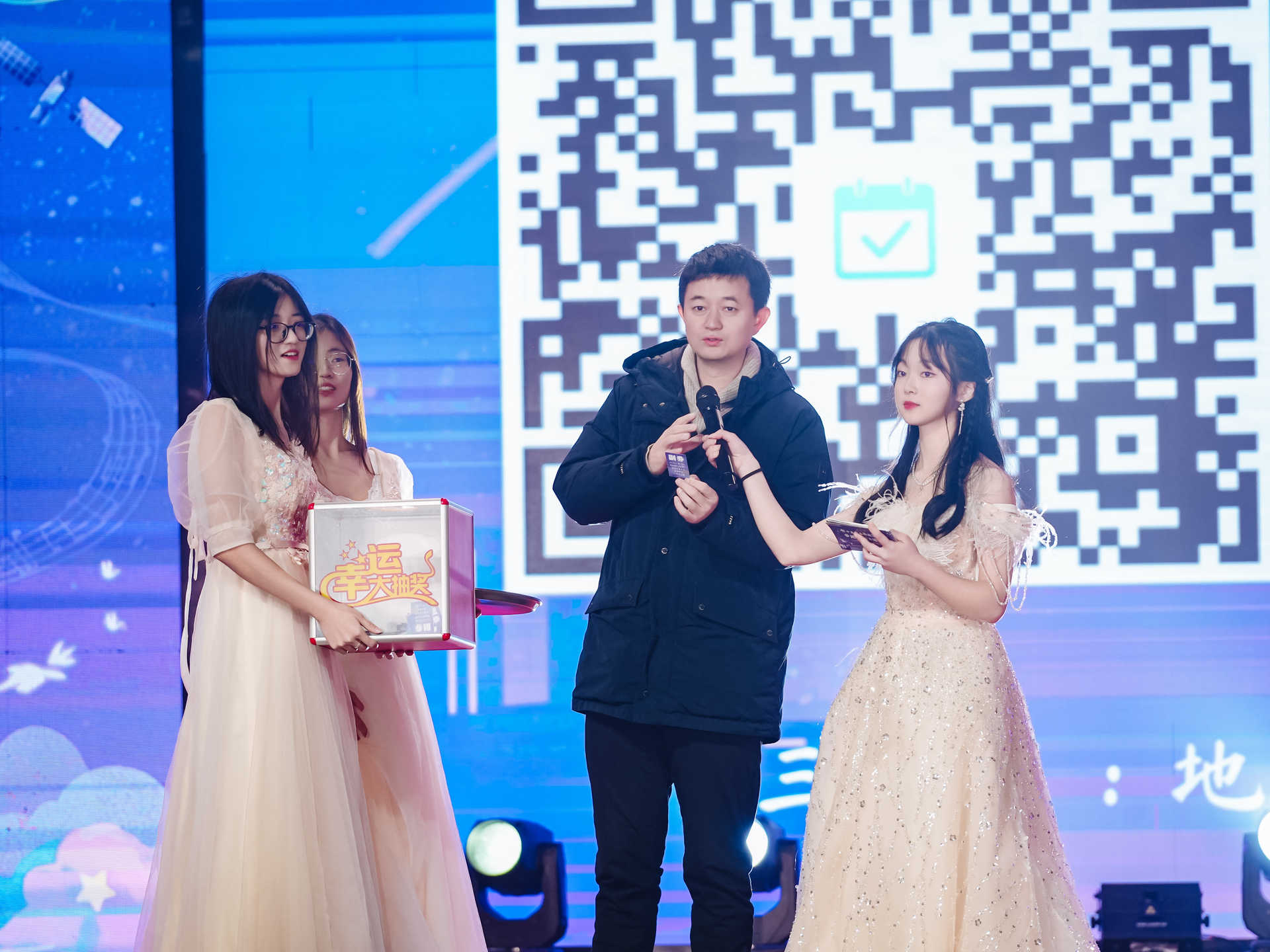 在第一篇章尾声,朱军副院长颁发了地学学院研究生优质生源奖,鼓励更多的优秀学子在交大继续深造、不断奋进。颁奖环节之后,便迎来了令人激动的第一次抽奖,朱军相继抽取三等奖幸运观众,推动现场气氛走向火热。
