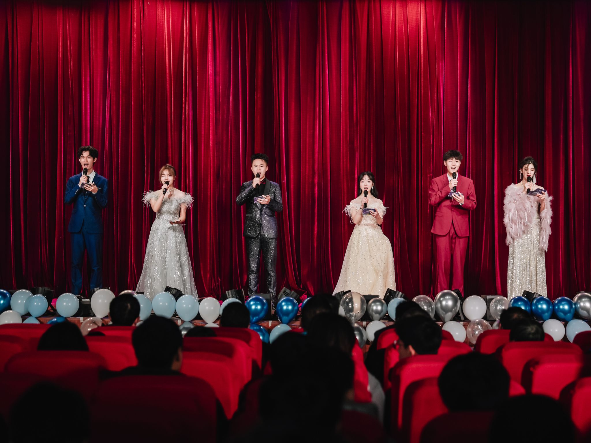 晚会接近尾声,地学学院合唱队带来的合唱《军民大生产》与全体工作人员的合唱《如愿》用嘹亮的歌声歌颂艰苦奋斗的过去,述尽先辈宏愿,展望祖国美好未来,在高昂的音乐声中将晚会气氛烘托到顶点,为本次晚会画上圆满的句号。