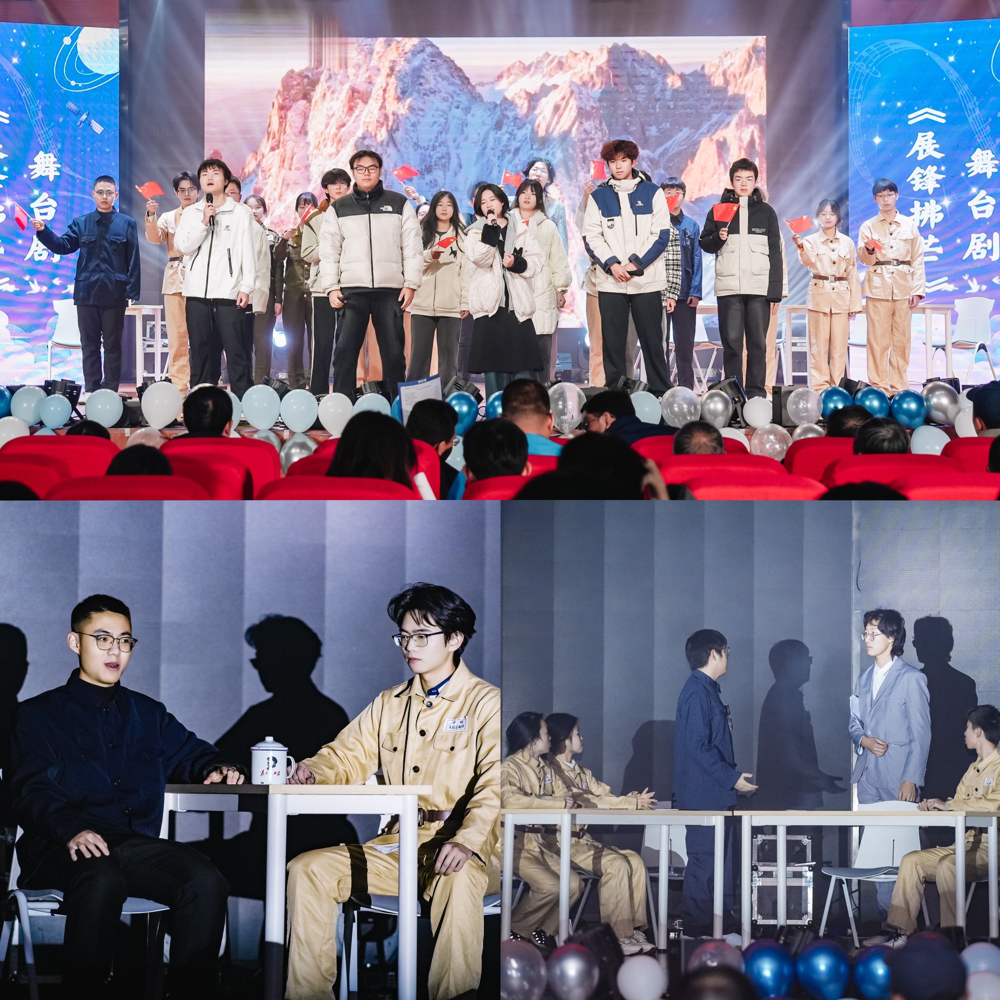 测绘4班、6班带来的《展锋拂芒》舞台剧采用故事加合唱的形式,讲述抗美援朝期间的故事,致敬那群“最可爱的人”;以合唱《我爱你中国》作结,气势磅礴、情感真挚,唱出了对祖国的热爱与自豪,极具感染力和表现力。