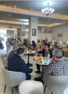 上午,离退休老师们抵达科技园后,首先在园内的休闲区品茗闲叙,畅谈退休生活的点滴,回忆往昔工作的美好时光。学院办公室老师、各系系秘书等全程陪同,向离退休老师们通报了学院近期发展情况,并转达了学院领导班子和全体教职工的亲切问候,关心离退休老师们的身体健康和生活近况,现场气氛温馨融洽。