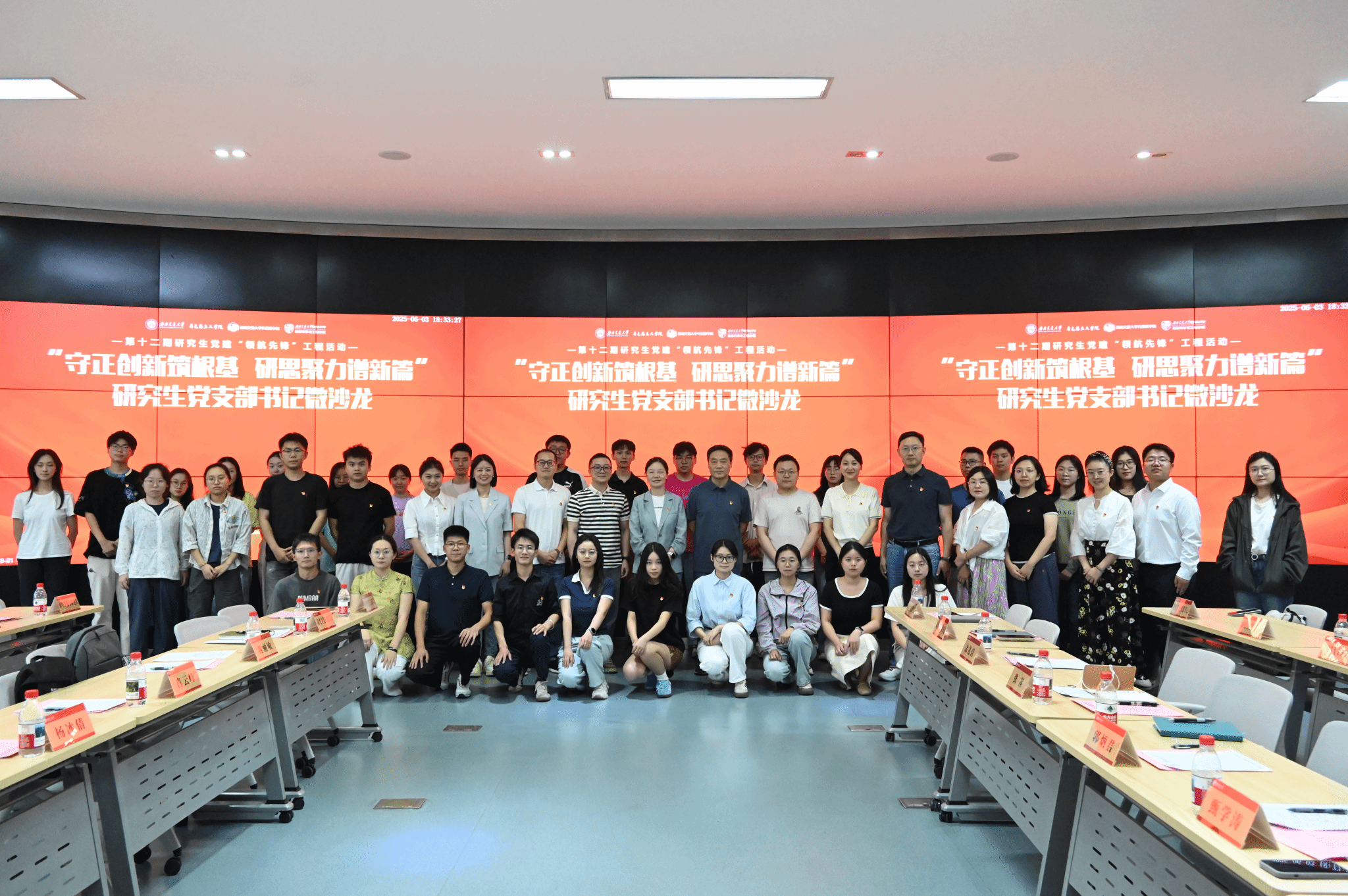 研2023级地质第二党支部、外国语学院学硕党支部联合承办的“领航先锋”工程子活动——研究生党支部书记微沙龙于6月3日在X4243举行。学校党委研究生工作部副部长李莹、党委组织部组织科科长雍腾、马克思主义学院党委书记廖军、 JVID