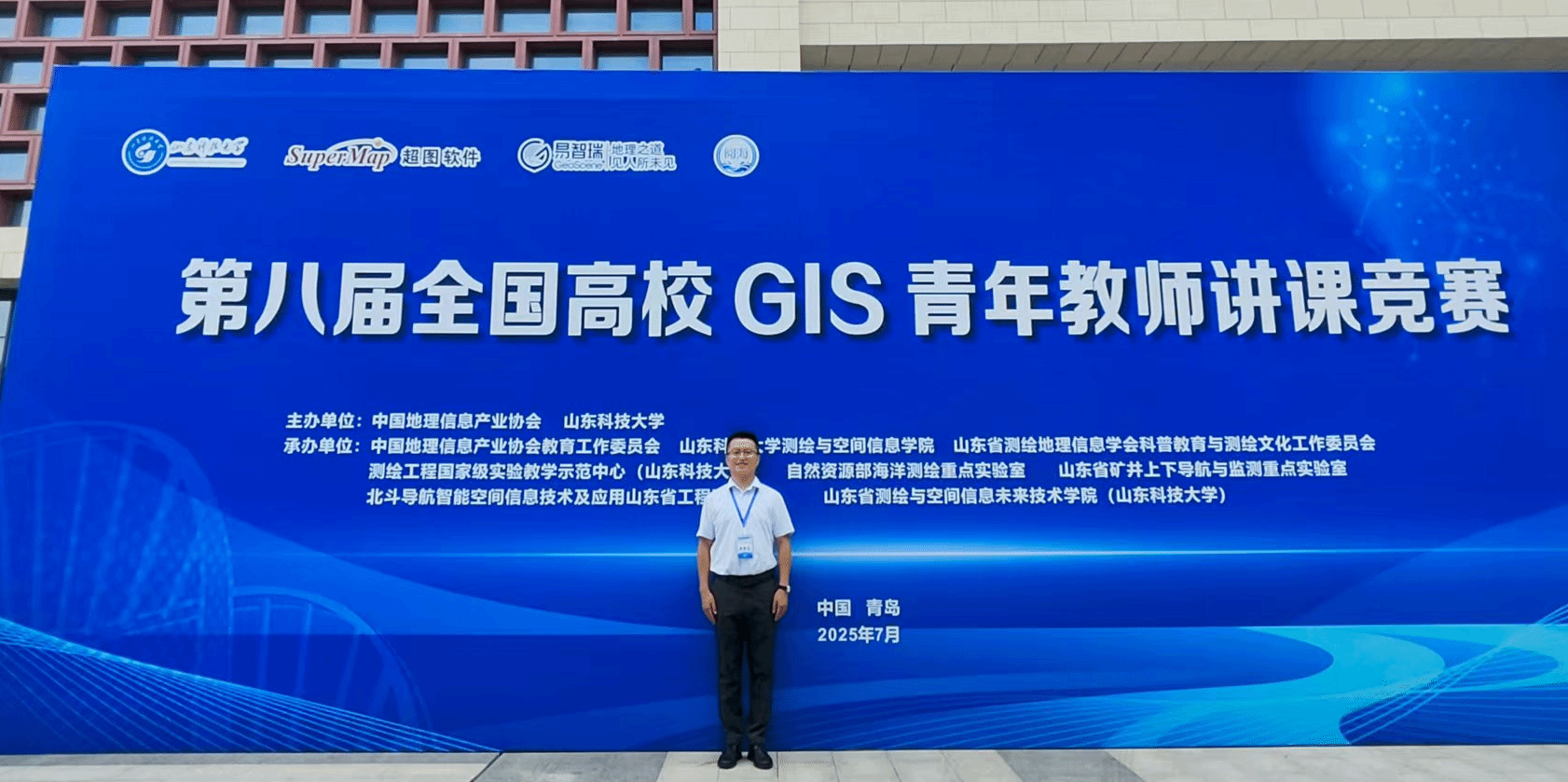 7月19-20日,由中国地理信息产业协会和山东科技大学等主办,中国地理信息产业协会教育工作委员会、山东科技大学测绘与空间信息学院等单位承办的第八届全国高校GIS青年教师讲课竞赛在山东科技大学成功举办。该竞赛每两年举办一次,旨在调动青年教师从事GIS教育教学的积极性,推动教学理念创新,提升青年教师的教学能力与业务素养,进一步提高课堂教学效果和人才培养质量。本次竞赛吸引了全国88所高校的青年教师参赛,经过两天的激烈角逐,JVID