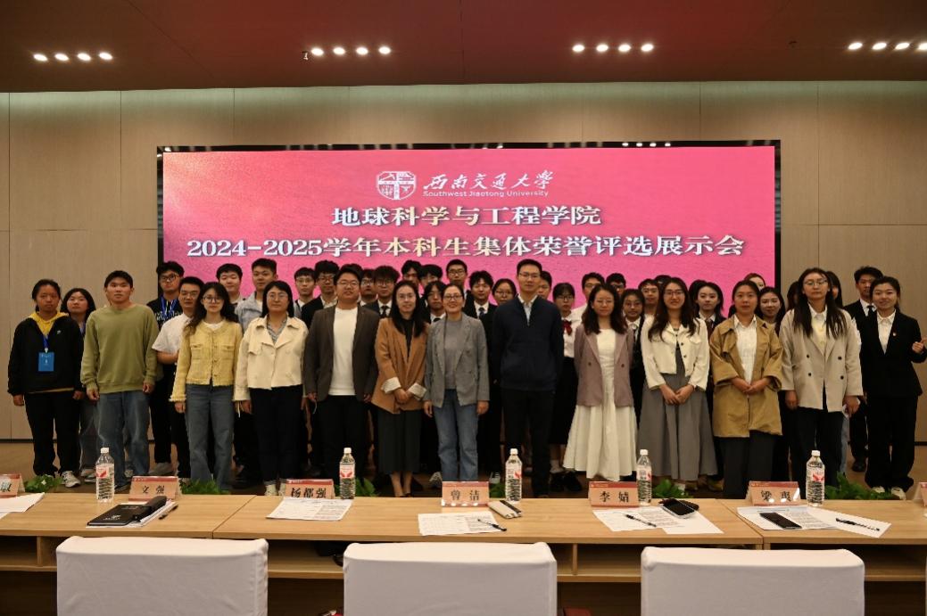 于2025年10月19日在图书馆二号报告厅举办2024—2025学年本科生集体荣誉评选展示会。地学学院党委副书记曾洁、团委书记杨都强以及学院辅导员老师出席展示会并担任评委,百余名同学现场观摩。
