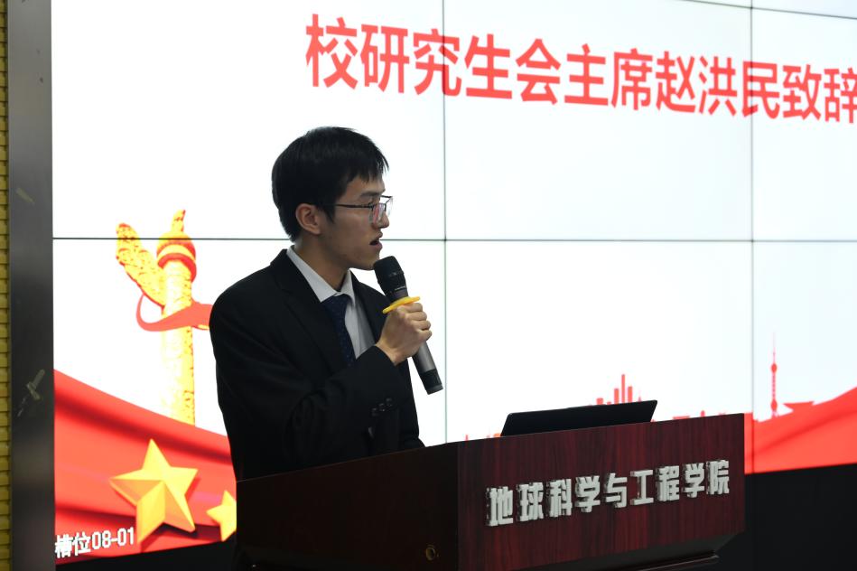 研究生会主席赵洪民致辞。他代表校研究生会对地学学院研究生会取得的优异成绩表示热烈的祝贺,并指出广大学生干部要争做时代青年马克思主义者,站稳同学立场,为了学生群体的利益而努力工作。