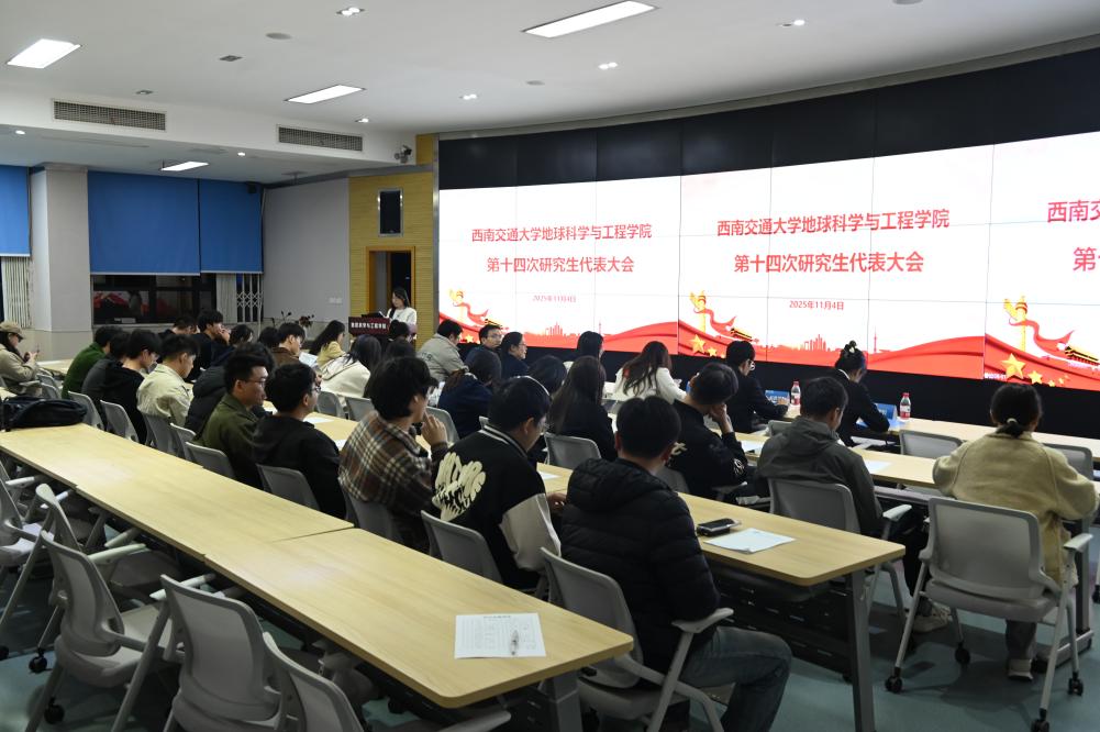 第十四次研究生代表大会在犀浦校区X4243顺利召开。地学学院党委副书记曾洁,学院团委书记、学生会指导老师杨都强,学院团委副书记李婧、文强、胡佳慧,学院研究生会指导老师韩沁儒,辅导员李林遥、黄欣宇,JVID