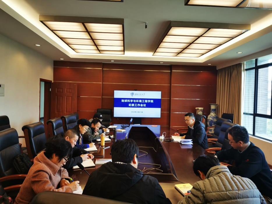 11月19日,地学学院于X4531会议室召开党政联席会,傅尤刚传达了学校11月14日学校纪委书记工作会议精神,重点传达了张学龙副书记的讲话精神和工作要求,带领大家认真学习了《戒鉴案例警示集》。