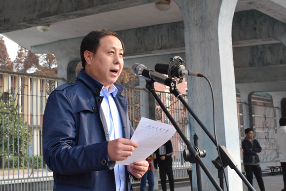 上午8:30,伴随着国歌声,开幕式正式开始。首先,受学校党委张学龙副书记委托,高增安为运动会致辞。