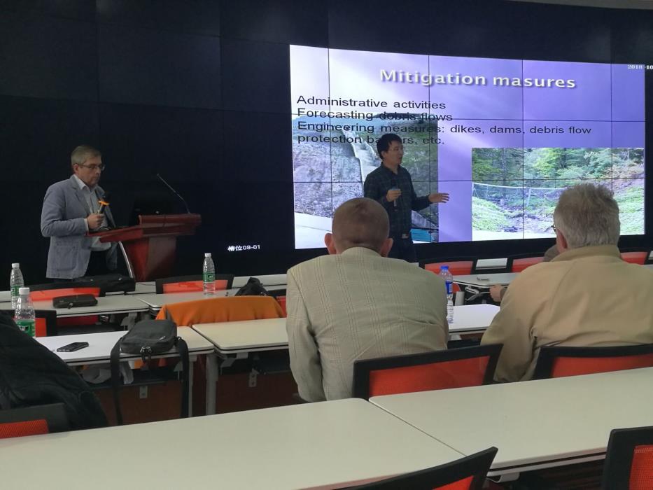 最后,Sergey A.Sokratov博士和Aleksandr L.Shnyparkov博士做了题为“Debris flows risk in Russia now and in future: methodology and results”的学术报告。泥石流暴露的地区占俄罗斯领土的8%左右。尤其是在北高加索、Kamchatka、库页岛、Baikalia和Transbaikalia等地区时常有自然灾害发生。然而,泥石流风险的评估与定居点、汽车和铁路、工业和旅游基础设施领域相对应,风险值取决于泥石流活动的相关参数,如空间脆弱性、时间恢复期和裸露领土的经济性。针对这种情况,开发了一种估算泥石流危险性的方法对市级单位进行风险评估。此外,根据联合国政府间气候变化专门委员会(IPCC)得到的气候变化情景,泥石流季节持续时间和泥石流恢复期的变化预计在21世纪中后期。Sergey A. Sokratov博士和Aleksandr L. Shnyparkov博士的团队将继续对得到的结果进行分析和讨论。