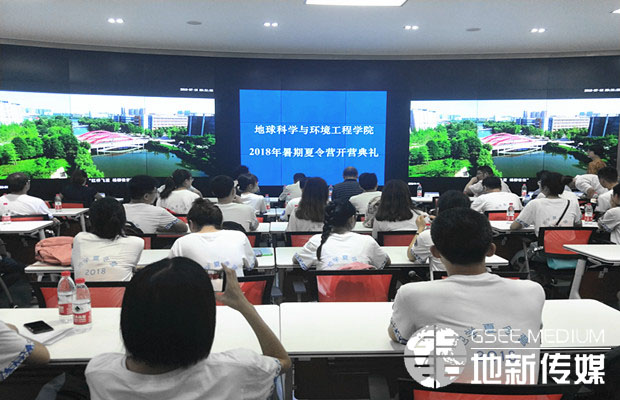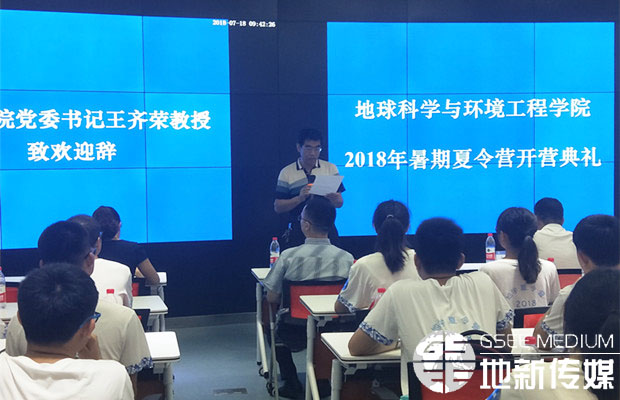 7月18日,地球科学与环境工程学院2018年暑期夏令营开营典礼在X4243多媒体报告厅举行。参加典礼的有地学学院院长刘国祥、党委书记王齐荣、副院长齐华、测绘遥感信息系系主任朱军教授、环境科学与工程系系主任赵锐教授、副系主任龚正君教授、消防工程系副系主任林鹏副教授、地质工程系主任助理廖昕副教授,以及2018年暑期夏令营44位来自全国各地的优秀大学生,学生工作组相关辅导员老师。开营典礼由地学学院党委副书记傅尤刚主持。