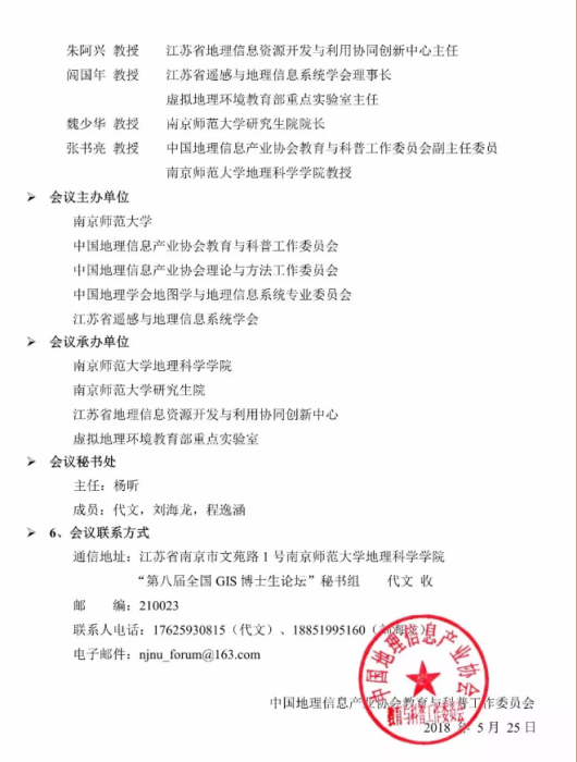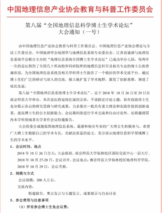 第八届“全国地理信息科学博士生学术论坛” 大会1号通知