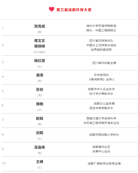 日前,从成都环保微信公众号获悉,JVID 环境科学与工程系主任赵锐教授荣获“第三届成都环保大使”称号,同时获此荣誉的还有中国工程院院士、清华大学环境学院院长贺克斌教授,四川省花样游泳队、中国水上花样游泳组合、世界锦标赛冠军蒋文文、蒋婷婷等一批公众人物。