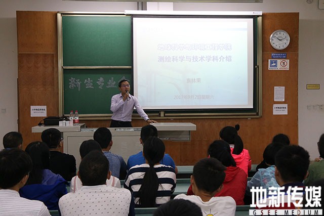 测绘类新生专业介绍会由测绘遥感信息系主任袁林果教授主讲。