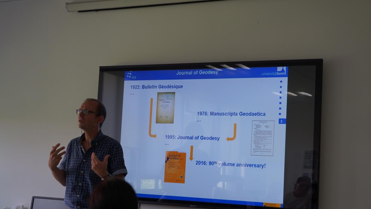 首先Kusche教授介绍了波恩大学的相关情况,波恩大学创建于1818年,自建校以来培养了包括7名诺贝尔奖得主在内的优秀毕业生,马克思曾在此学习。在2017年的《Times Higher Education, The World’s Most International Universities》中排名48。波恩大学目前有注册学生36947名,其中包含4780名国际学生。大地测量与地球空间信息研究所包含完整的本科(3年制)、硕士(2年制)和博士培养项目,每年招收100-200个本科生(全德国最大的大地测量培养项目),30-50个硕士生,目前有30-40个博士生。
