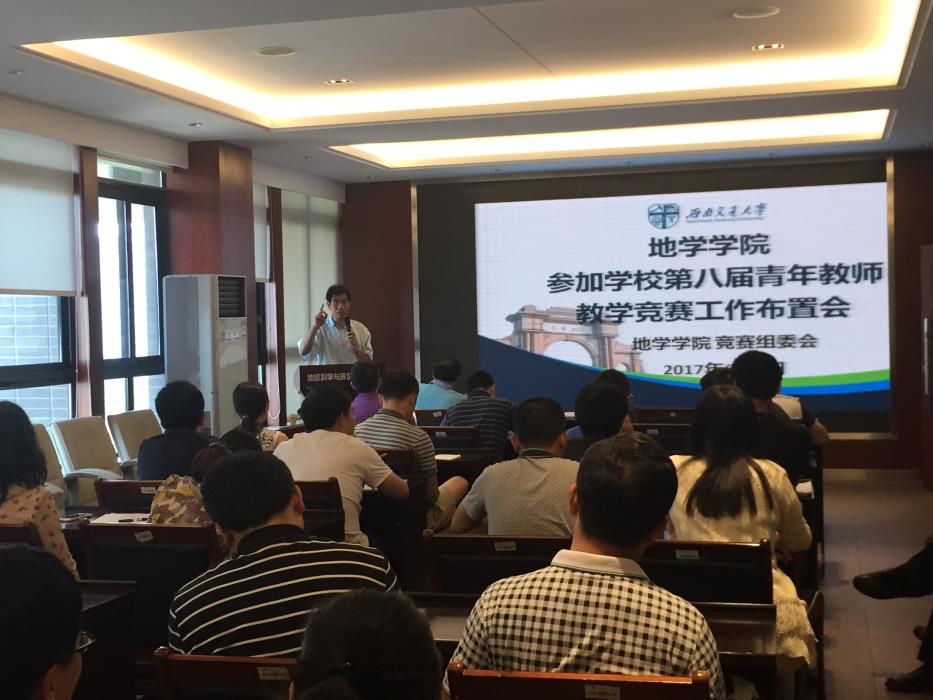 召开《地学学院参加学校第八届青年教师教学竞赛工作布置会》,学院党委王齐荣书记做了以下四方面的参赛动员报告:1、统一思想 高度重视。他强调学院青年教师要统一思想,高度重视,指出教学能力与水平的提升是青年教师成长的重要目标,讲课比赛是实现这一目标的有效手段;2、积极报名 党员带头。他要求青年教师积极报名,特别是青年教师党员要发挥先锋模范作用,带头报名,系教工党支部要协助系里做好动员与组织工作;3、充分准备 力争优胜。他希望青年教师为比赛做好充分准备,在比赛中充分展示自身的特点与优势,争取获得优异成绩;4、认真总结 争取实效。他要求赛后青年教师要认真总结经验反思不足,从而达到以赛促升的实际效果。主管本科教学欧阳峰副院长,向参赛的青年教师进一步详细解读了第八届青年教师教学竞赛规则。会后还召开了系主任专项工作会议,听取和征求系主任对教学竞赛相关工作的建议。