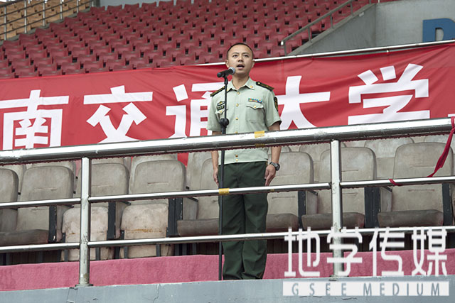 首先,武警四川总队成都市支队四大队教导员李少校为全体受训新生做开训讲话。他首先向负责本次军训的教职员工表示感谢,向全体新同学表示热烈的欢迎和衷心的祝贺。而后他指出,军训是高校生活的必修课,是国防教育的重要内容,是提升自我、完善自我的重要过程,通过军训,不仅能强健体魄、磨练意志,同时有助于同学们养成坚忍不拔、迎难而上的精神。他希望同学们在军训期间能克服困难,挑战自我,也希望本次军训工作圆满成功。