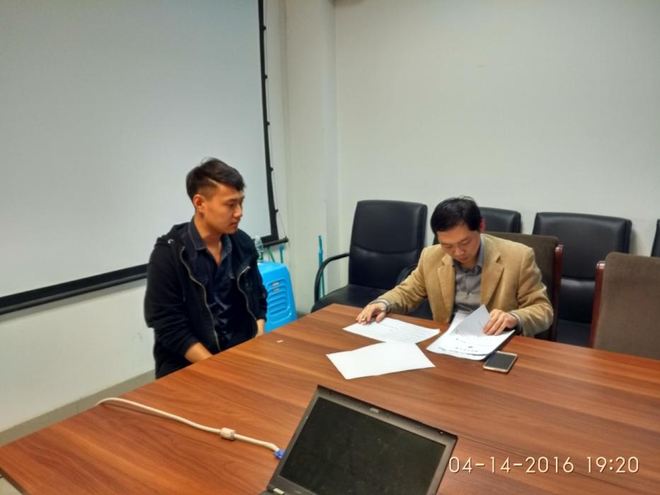 2016年4月14日晚上7点,测绘系2016年本科毕业论文中期检查专家面谈工作在X4546、X4433、X4431举行。检查工作邀请到测绘、地信及遥感三个研究方向的教师袁林果、周乐韬、黄泽纯及慎利进行现场指导工作。专家面谈采取一对一或一对多的灵活形式,专家从论文进展、外文翻译、指导纪要、程序编写等方面对每位学生进行提问,较好地掌握了学生论文的进展情况,对进展缓慢的学生论文,提出了限期整改的要求。此次专家面谈工作较好地保证了我系本科毕业论文的质量。