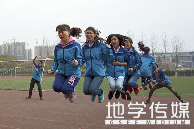 比赛分为5组,每支队伍由两名男选手摇绳,六名女选手跳绳,以六人同时跳绳的最高次数计入成绩。地环学院派出由蔡红波与王绍笳老师带领的两支队伍参赛,由钟萍,杨都强等共16名老师参加了比赛。在裁判的开始命令发出后,伴着整齐的号子,JVID