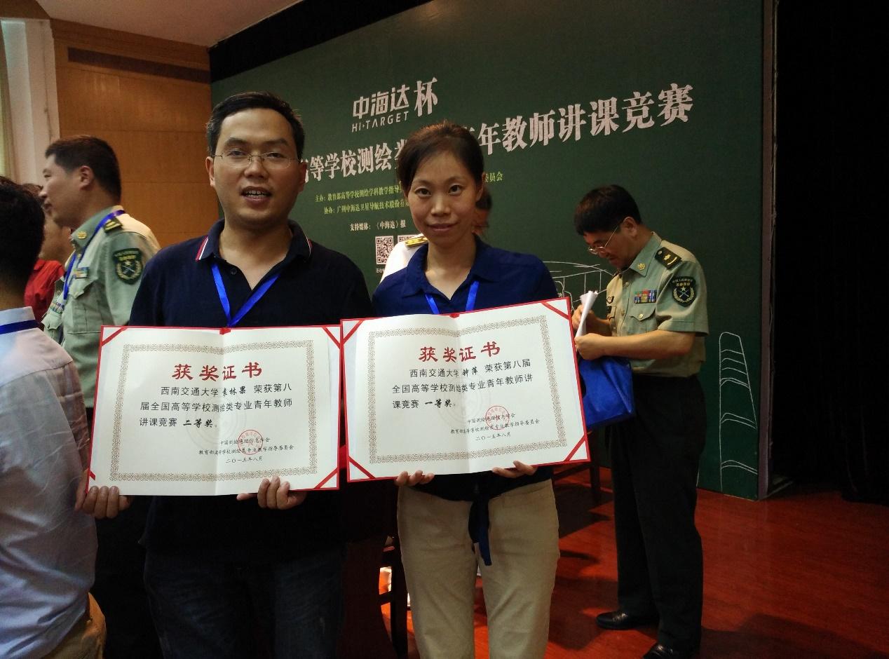 测绘工程系青年教师钟萍博士和袁林果博士分别参加了“测量学”和“大地测量学基础”两门课程的角逐,并荣获一等奖和二等奖。