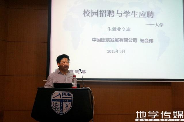 校园招聘与学生应聘专题讲座在犀浦校区图书馆一号报告厅隆重举行。本次讲座由地学学院举办,主讲人为中国建筑发展有限公司人力资源管理中心总经理杨会伟。地学学院党委副书记傅尤刚、团委书记周青、辅导员田凤晓、何杨、闫剑、杨都强出席了此次讲座,同时与会的还有来自学校诸多专业的学子。