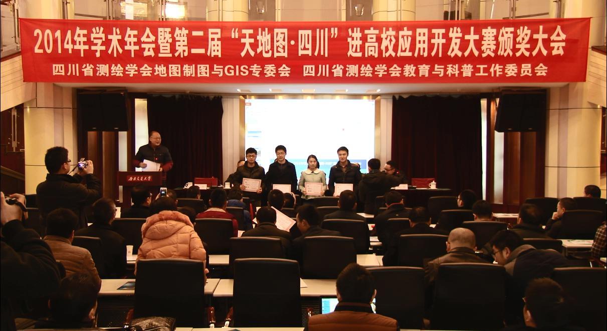 本届大赛由四川省测绘学会教育与科普专业委员会和地图制图与GIS专业委会联合举办,全省12所重点高校协办,旨在促进天地图•四川的推广应用,发掘旅游、气象、教学、购物、娱乐、交通等各行业的潜在需求。专家组刘建川介绍,天地图•四川建设从2007年开始进行探索,2011年11月正式上线运行,并已开通了手机版。天地图•四川采取门户网站、应用服务接口、前置服务等多种方式,为重大工程、专业应用、企业增值、百姓生活提供有效服务,2013年5月正式链入四川省政府网站和部分政府部门的门户网站,并被认定为省政府网站唯一地理信息服务平台。目前,已有100多家政府部门、企事业单位运用天地图•四川开展业务工作,在线注册的二次开发用户达1000多个,各类地理信息服务的日均访问量20多万次。