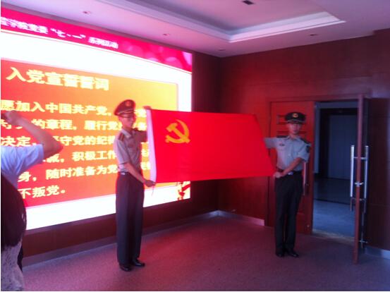接着,全体新党员和老党员代表在院党委副书记傅尤刚同志的带领下,举起右拳,面对党旗庄严宣誓。