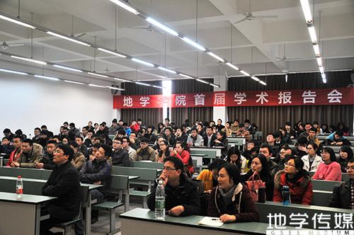 2014年3月13日下午两点,地学学院首届科研学术报告会于犀浦校区X4153教室召开,来自全校近200余名研究生及教师参加,学术报告会由地学学院副院长胡卸文教授主持,报告会分别由测绘学科黄丁发教授(博导)、地质学科程谦恭教授(博导)及环境学科黄涛教授(博导、副院长)主讲。