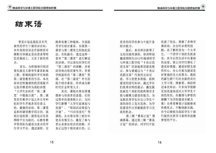 地学学院第三期“菁英计划”团干培训简报