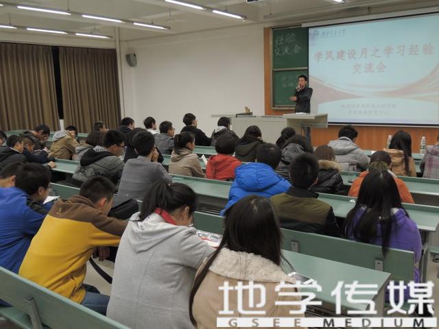11月25号晚7点,地学学院“心交流,新起点”经验交流会在X4359顺利举行。本次经验交流会由地学学院学生自我管理中心主办,针对各年级同学们在学习上遇到的各种困扰或困难,特邀大三和大四的优秀学生各两名,与同学们分享学习经验,以他们个人的成功经历激励大一学生,让他们尽快适应大学生活,进入大学角色,并且给大二大三学生提供学习的好榜样。