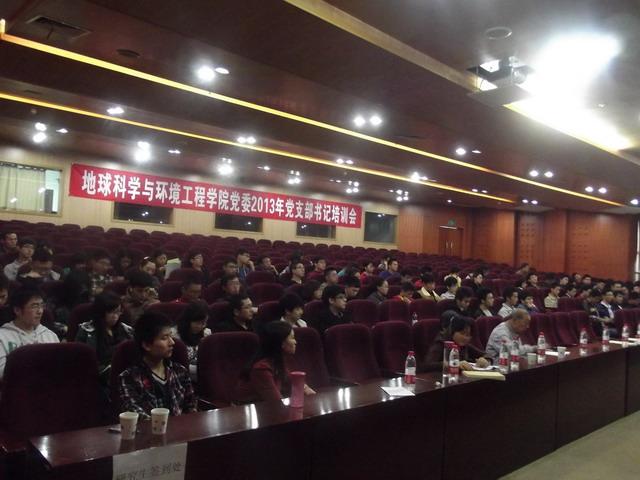 党支部工作水平,提高发展党员质量,提升学院党建工作的科学化水平,地学学院党委于10月29日14:00在犀浦校区图书馆第二报告厅举行党的群众路线教育实践活动工作部署暨2013年党支部书记培训会。参加培训会的领导有地学学院党委书记徐瑞堂、党委组织部副部长刘长军、地学学院党委副书记傅尤刚。学院教职工党支部书记、组织员、学生党支部书记、支委、学生党员代表、班长及团支书代表110余人参加了培训会。
