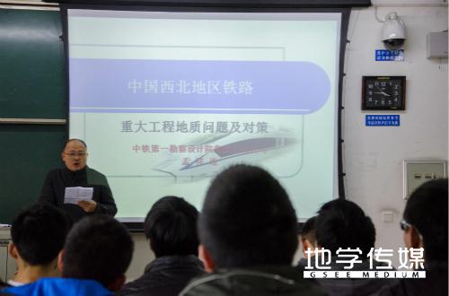 研究生以“中国西北铁路重大工程地质问题及对策”为题展开讲解,为地院的同学们带来一场学术盛宴。JVID